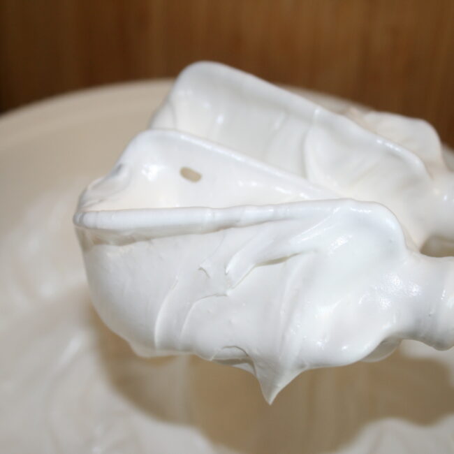 - na niższych obrotach miksera dodajemy mąkę ziemniaczaną i sok z cytryny