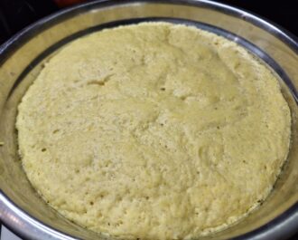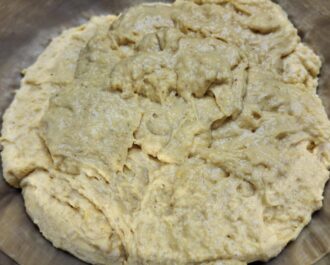 Wyrobione ciasto drożdżowe przykrywamy czystą ściereczką i zostawiamy do wyrośnięcia na ~1 godzinę.