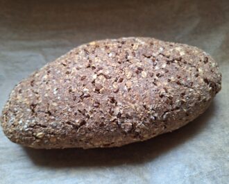 Uformowany bochenek pieczemy na blasze wyłożonej papierem do pieczenia (180 stopni przez ~1 godzinę).