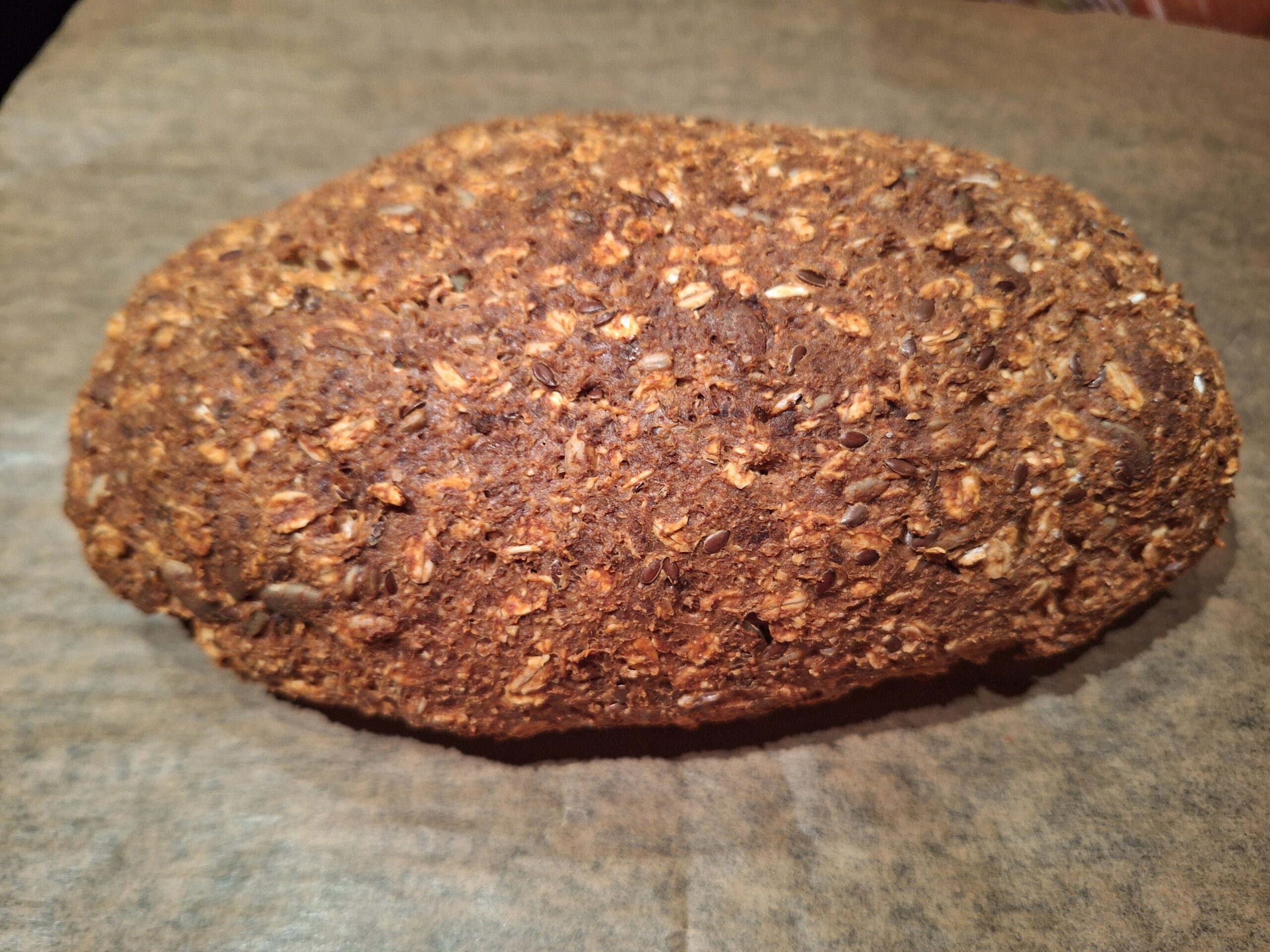 Uformowany bochenek pieczemy na blasze wyłożonej papierem do pieczenia (180 stopni przez ~1 godzinę).