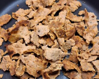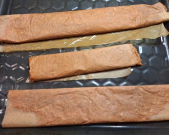 Pieczemy ~50 minut w piekarniku nagrzanym do 180 stopni. Po upieczeniu rozwijamy i rwiemy na mniejsze kawałki.