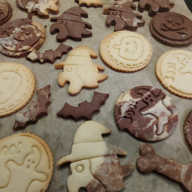 (opcjonalnie można do części zagniecionego ciasta dodać kakao i/lub przyprawę korzenną)