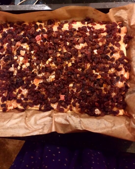 - ciasto wykładamy na blachę wyłożoną papierem do pieczenia