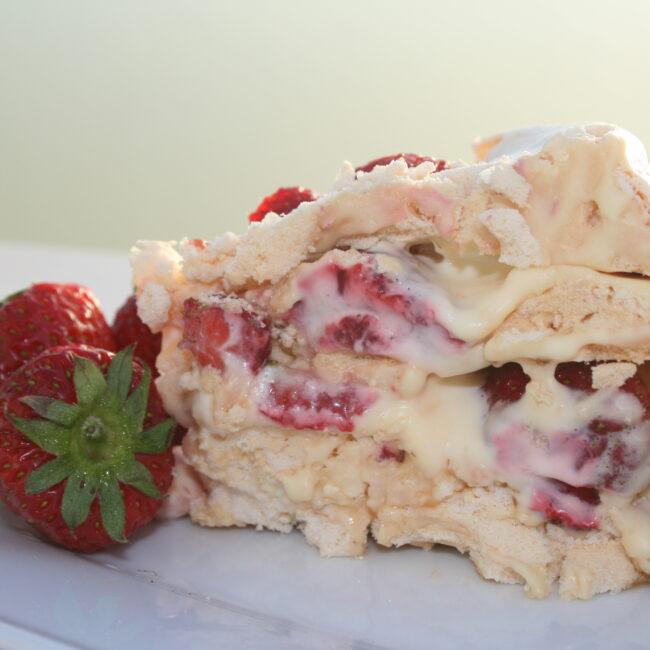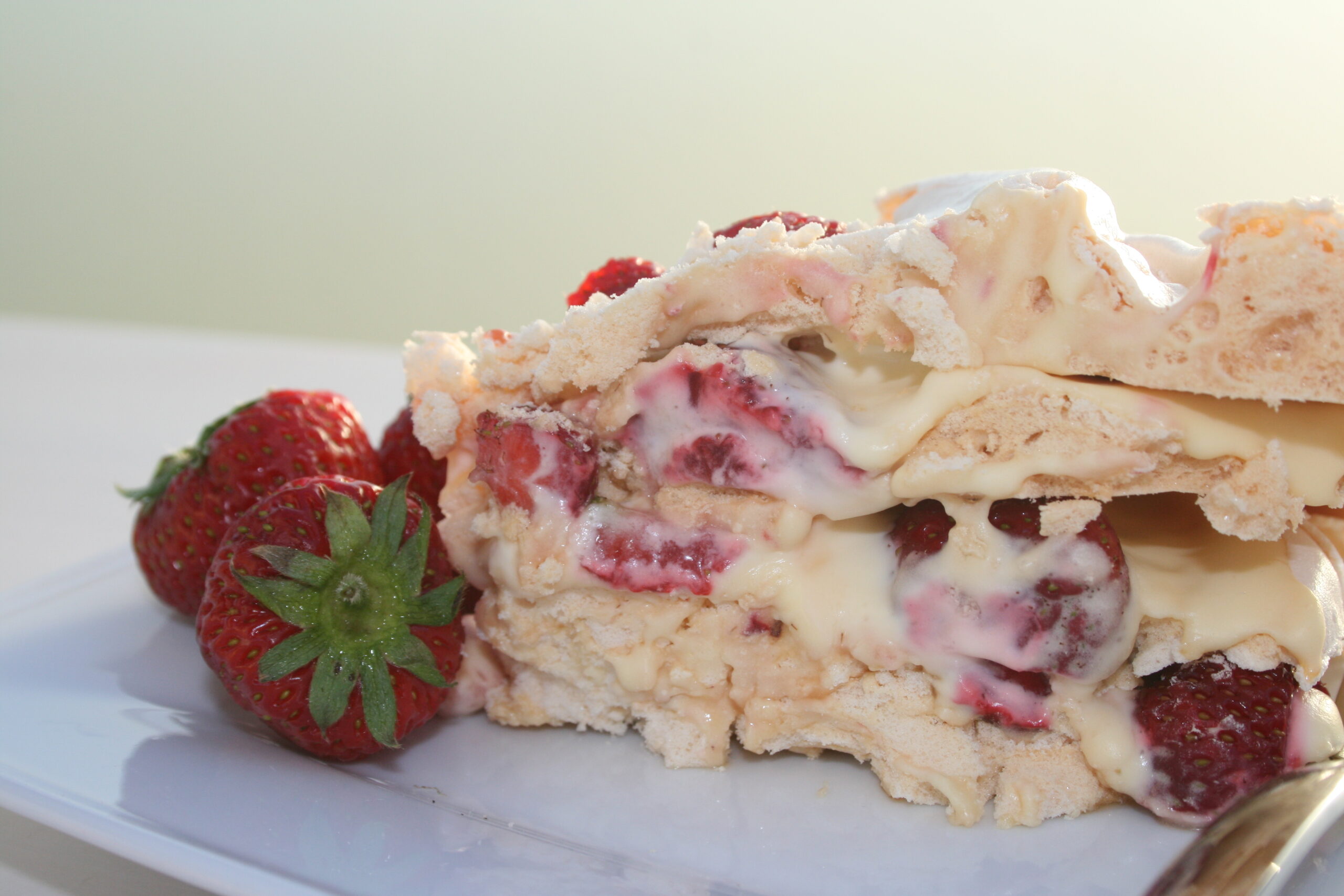 Polecany krem znajdziemy w przepisie "Krem tortowy z mascarpone", dekoracyjnie kroimy także truskawki.