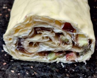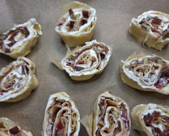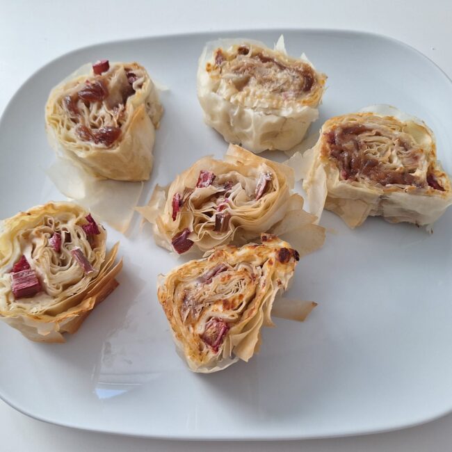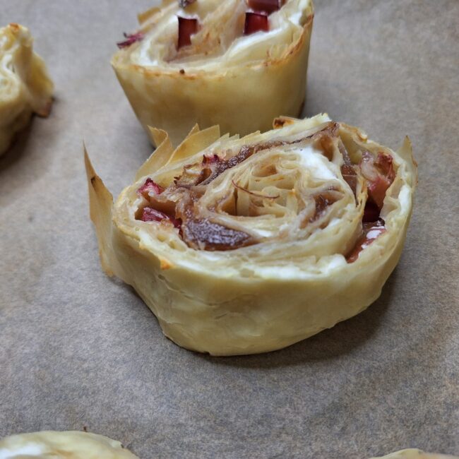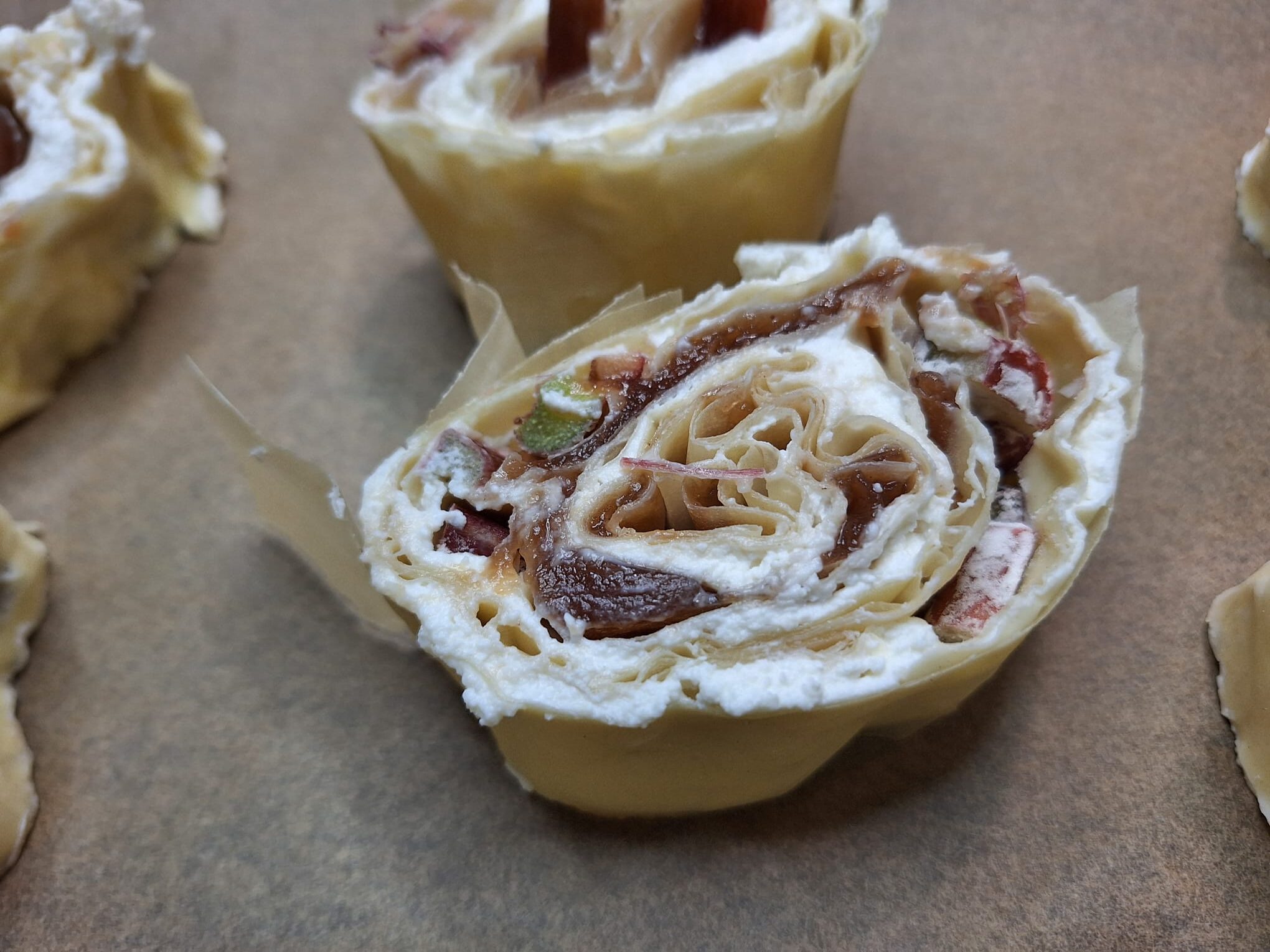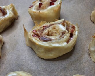 Pieczemy w temperaturze ~200 stopni przez ~25 minut (ponieważ ciasto filo jest gotowcem kontrolnie sprawdzamy na opakowaniu czy takie są właśnie zalecenia czasu i temperatury).